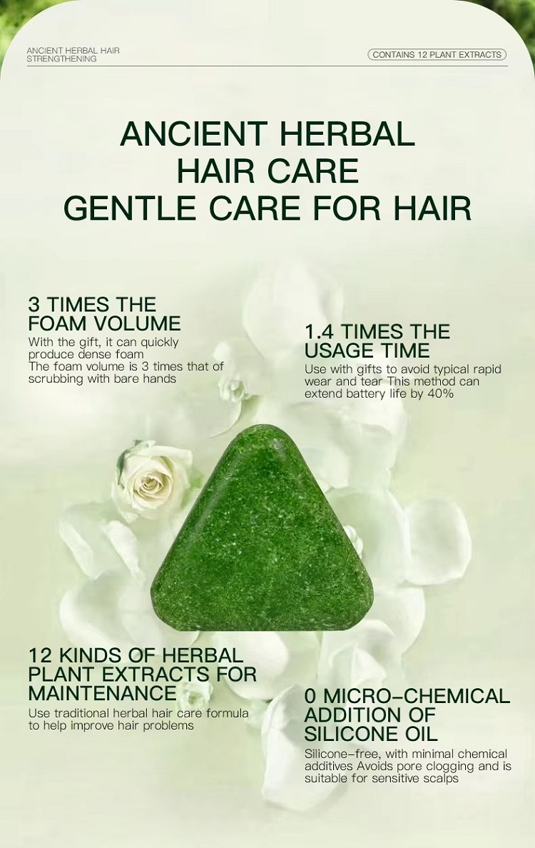 Dexe Nature Herbal Green Triangle Platycladus Usman Grass Shampoo Soap Bar 100g